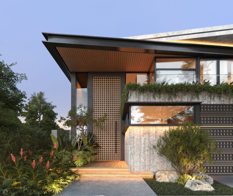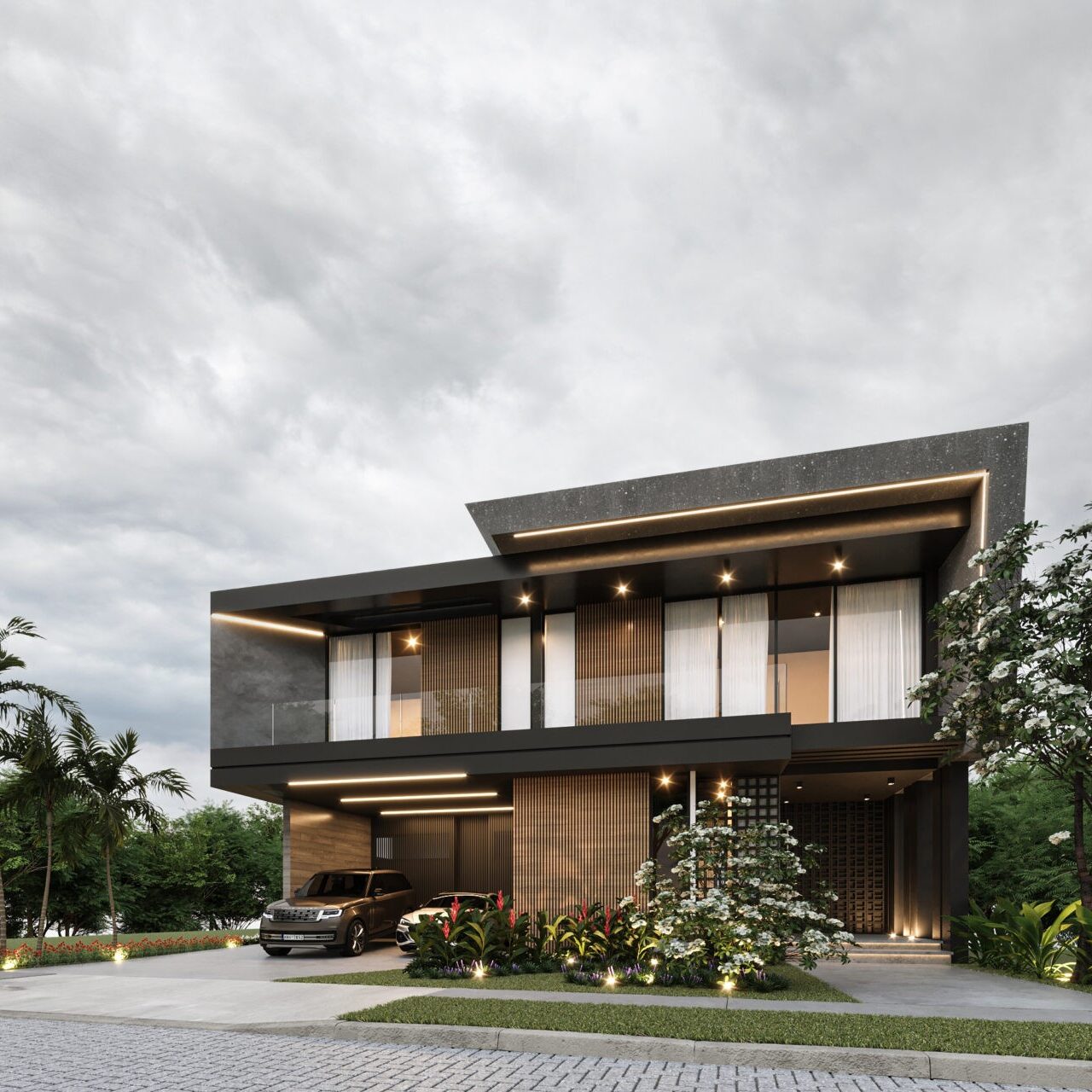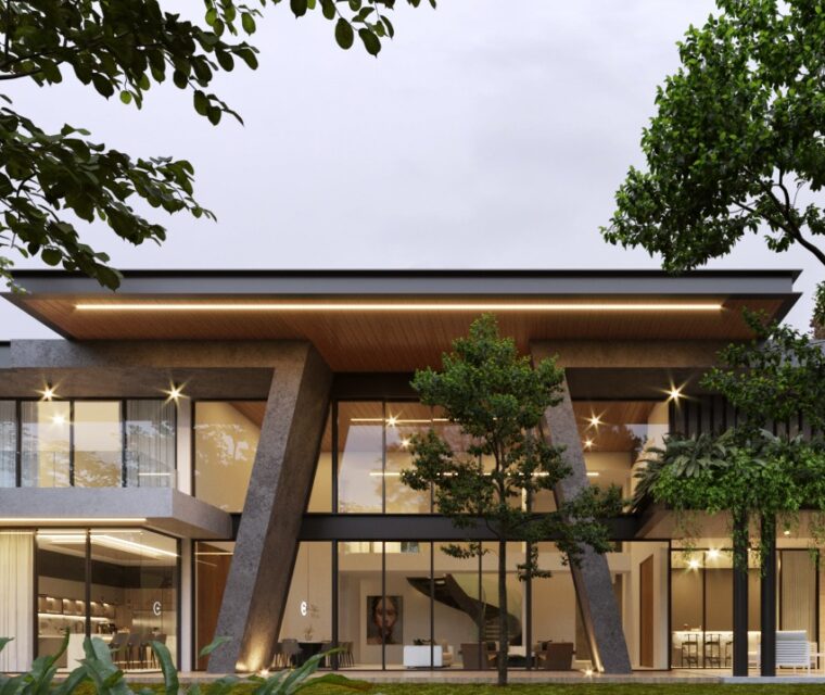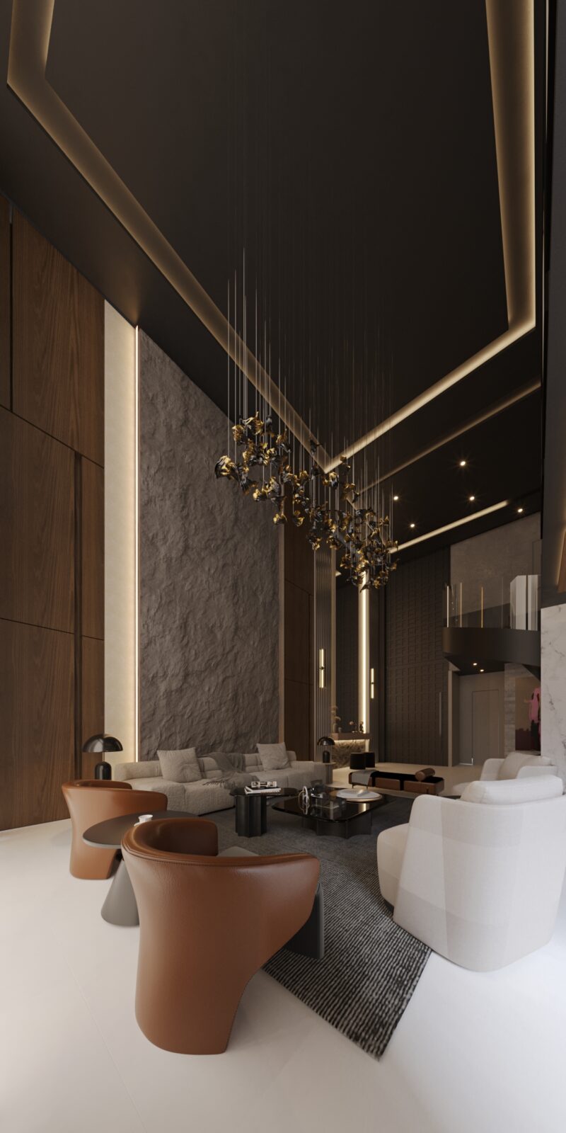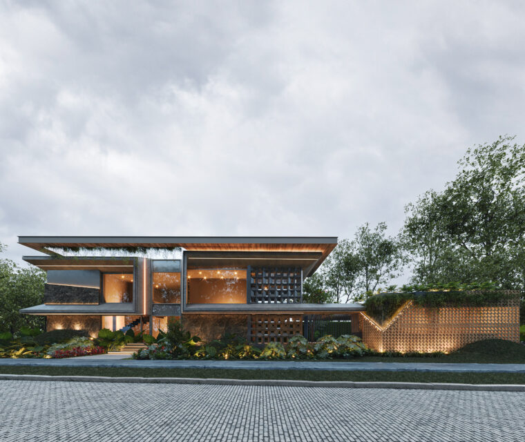 El concepto de esta vivienda es brindar al usuario una sensacion de confort y resguardo, el cual se implemento el concepto de una cueva, con colores grafito y el tono calido de la madera. Todos los espacios se encuentran integrados unos con otros, las dobles alturas dan imponencia a la vivienda.