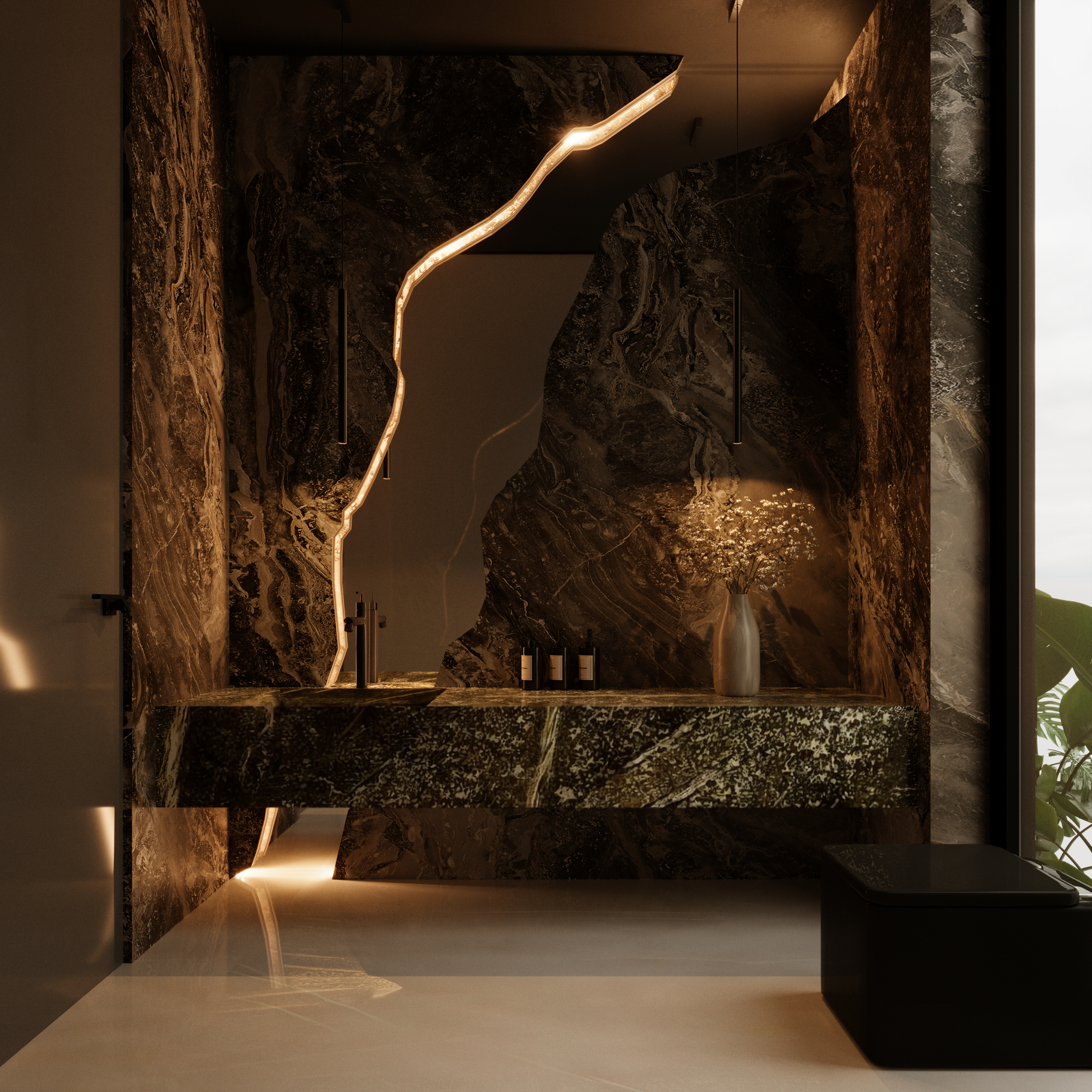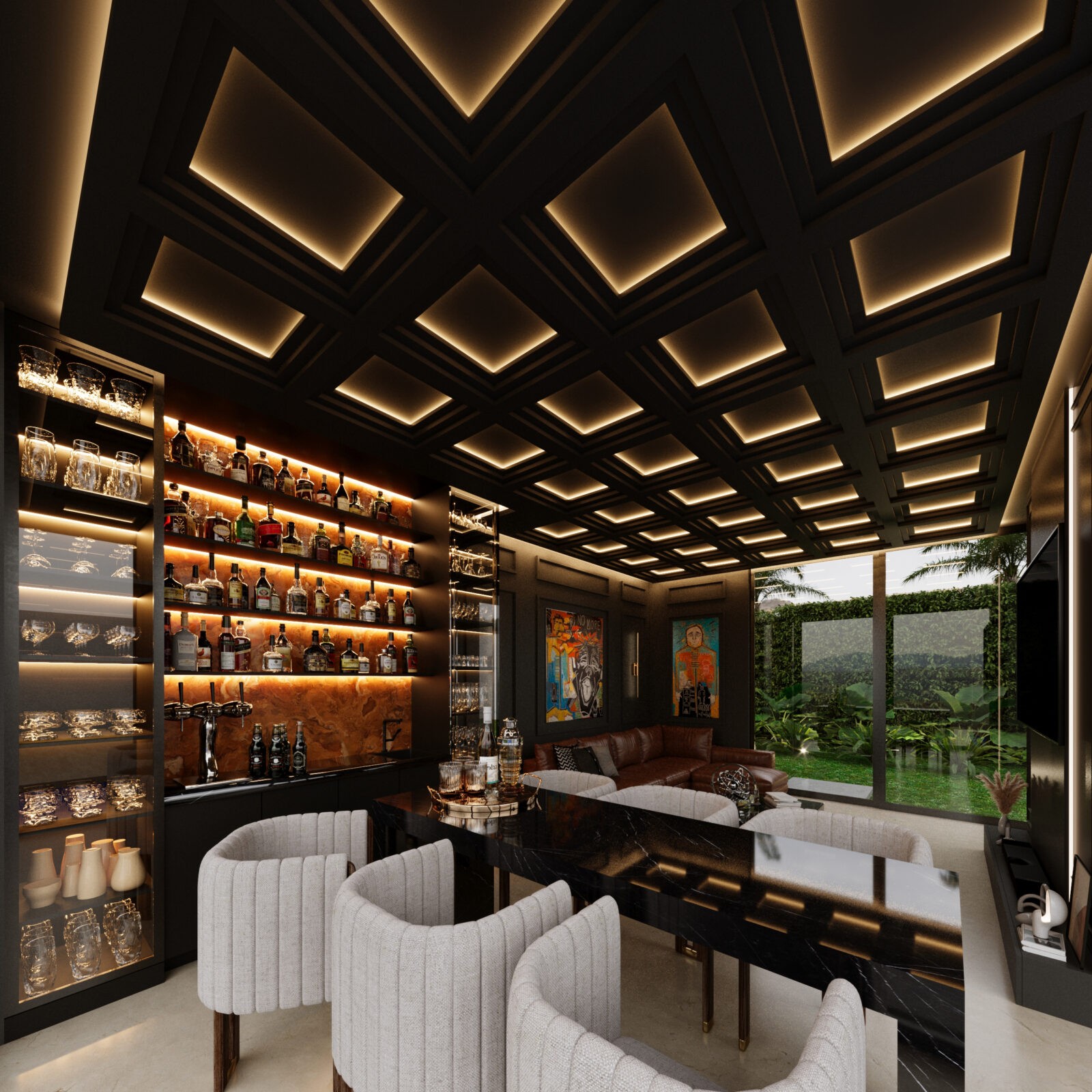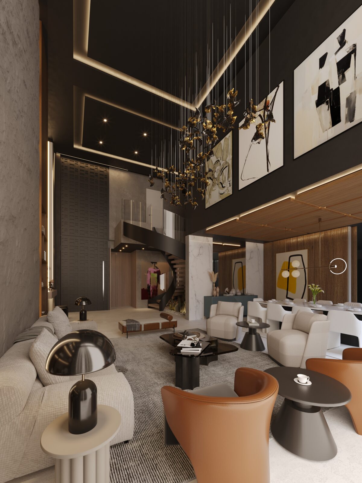 El concepto de esta vivienda es brindar al usuario una sensacion de confort y resguardo, el cual se implemento el concepto de una cueva, con colores grafito y el tono calido de la madera. Todos los espacios se encuentran integrados unos con otros, las dobles alturas dan imponencia a la vivienda.